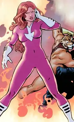 In her first appearance, Plastique attempts to bomb the New York Herald-Express before Firestorm defeats her.[2] Later, via genetic engineering, she gains the ability to project explosive force outward from her body.