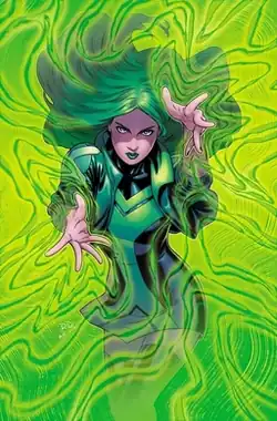 Like the other X-Men, Lorna Dane belongs to the subspecies of humans called mutants, who are born with superhuman abilities.[3] She can control magnetism in a manner similar to her father, Magneto, who served as the X-Men's main antagonist in early stories. Although it was speculated for decades, the fact that Magneto was her father was not revealed until a 2003 storyline, some 35 years after the character's debut.[4][5] Many of Lorna's stories involve her mental instability and mental health issues, particularly her bipolar disorder, which is exacerbated by the repeated brainwashing episodes and other traumatic events. Lorna's mental health has also been a factor in storylines where she becomes evil or loses control of her abilities. The character has been known as Polaris, Malice, and Pestilence at various points in her history.[6]