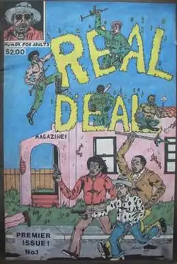 Real Deal Magazine was an independent comic book title published in the 1990s. One of the rare contemporary African-American-created and published comics, Real Deal depicted the Los Angeles underworld life with deadpan visceral humor and gross-out violence (termed "Urban Terror" by the creators). Stories were by H.P. McElwee (aka "R.D. Bone") and art primarily by Lawrence Hubbard (aka "Raw Dawg").