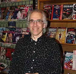 ![]() Sikoryak at a signing at JHU Comics in Manhattan for The Unquotable Trump, on the day of President Trump's 2017 inauguration | |