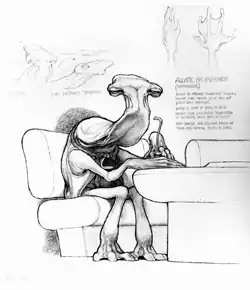 Cobb returned to cinema work when he worked with Dan O'Bannon to design the eponymous spaceship for the 1973 cult film, Dark Star (he drew the original design for the exterior of the Dark Star spaceship on a Pancake House napkin). After contributing designs for Alejandro Jodorowsky's uncompleted film adaption of Frank Herbert's novel Dune, Cobb was engaged by Lucasfilm to produce conceptual artwork for the space fantasy film Star Wars (1977). Working alongside artists John Mollo and Ralph McQuarrie, he created the designs for a number of exotic alien creatures for the Mos Eisley cantina scene.[5][6]