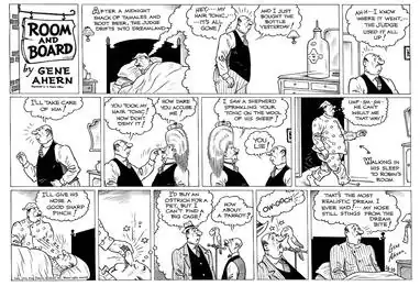 In 1936, cartoonist Gene Ahern created the second strip, a continuation of a previous strip, Our Boarding House, which he drew from 1921 to 1936 for another syndicate. This second Room and Board was discontinued on November 29, 1958.[2] Ahern's Room and Board had no connection with Bostwick's strip other than the similar title.[3]