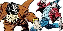 After Geist illegally drugs him, Roughouse is driven insane before the nun Sister Salvation heals him. Afterwards, he stays with her to help her rebuild her destroyed mission.[2][3] However, he eventually leaves her and becomes a villain again.[4]