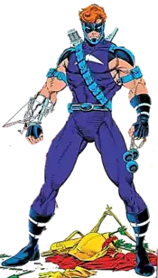 The character first appeared as Green Arrow's teenage sidekick Speedy, a name by which he was known for over fifty years, in More Fun Comics #73 (November 1941) and was created by Mort Weisinger and George Papp.[3] The character's modern-day version was an early member of the Teen Titans who later assumed the identity Arsenal in The New Titans #99 (July 1993), and became a member of the Justice League of America under the guise Red Arrow in Kingdom Come #2 (June 1996) or Justice League of America vol. 2 #7 (May 2007).[4]