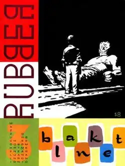 In 1991 he published the first issue of the anthology Rubber Blanket in a deluxe, oversized format.[3] Each issue was 9"x12",[4] and was self-published by Mazzucchelli and Lewis under the imprint of Rubber Blanket Press, based in Hoboken, New Jersey.[5] The name was taken from the rubber blanket used to transfer ink from the printing plates to the printing surface in offset printing. The title was meant to indicate that the printing process was integral to the work published therein.[2]