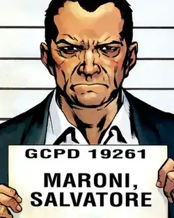 Salvatore Vincent Maroni is a fictional character appearing in American comic books published by DC Comics, commonly in association with Batman. The substantial character is portrayed as a powerful mob boss and gangster of Italian descent in Gotham City and an enemy of Batman. Maroni is most famous for disfiguring Harvey Dent, setting the stage for the young district attorney's transformation into the supervillain Two-Face.
