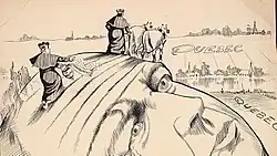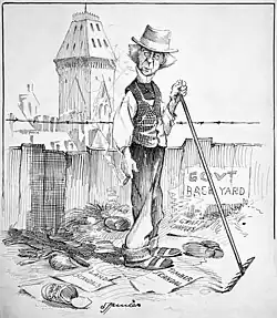 Sam Hunter (1858–1939) was a Canadian cartoonist and writer who worked for four Toronto newspapers.[4] His work displayed his support for the Conservative Party of Canada and criticized Liberals such as Wilfrid Laurier, as well as French Canadians, Catholics, and Americans. Peter Desbarats and Terry Mosher described Hunter as "a great and gentle caricaturist".[5]