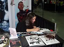 Pichelli started working for Marvel Comics in 2008[2] with the limited series NYX: No Way Home,[4][5] followed by a brief run on Runaways with writer Kathryn Immonen in 2009.[5][6] She worked with Immonen again on the X-Men: Pixie Strikes Back limited series, released in December 2009, which focused on the X-Men character Pixie.[7] Pichelli provided art for one storyline in the I Am An Avenger anthology series, which ran from 2010 to 2011,[1] then joined the team working on Ultimate Comics: Spider-Man starting with the October 2010 issue #15.[8] After that series ended, Pichelli contributed to the 2011 limited series Ultimate Fallout, where she illustrated the first image of the Spider-Man character as portrayed by Miles Morales in the Ultimate Marvel universe.[5][9] Pichelli took on regular art duties on the relaunched Ultimate Comics: Spider-Man with Morales as the protagonist, starting in September 2011.[10]
