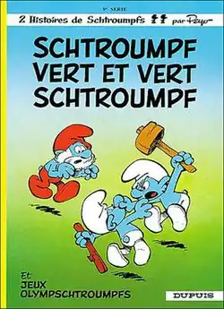Schtroumpf Vert et Vert Schtroumpf is the ninth comic album adventure of the Smurfs, written and drawn by Peyo with Yvan Delporte as co-writer.[1] The story is considered a parody on the still ongoing language war between French- and Dutch-speaking communities in the authors' native Belgium. The plot is similar in a way to King Smurf, an earlier adventure, in that the usually harmonious community of Smurfs falls into disarray due to the failure of father-figure Papa Smurf to exercise his leadership.[2]