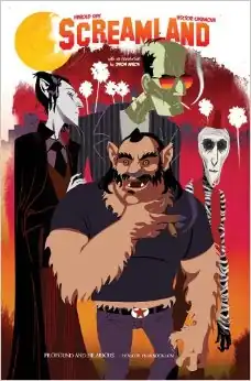 Screamland follows the lives of three monsters turned Hollywood movie actors, Frank, the lupine Carl London, and The Count. Frank and Carl are washed up "has beens" that find it extremely difficult to gain regular work and are often forced to make money by very dodgy means- something that is made more difficult by Frank's rampant alcoholism and Carl's short temper and tendency to overindulge in everything. The Count has been more fortunate, as his eternal youth and an ongoing fascination with vampires has ensured that he will always have lucrative work, but the public scrutiny also has his price. While The Count is still popular, he feels that he has to hide his homosexuality in fear that the public will turn on him. The comic frequently mentions a fourth monster, The Mummy, that is only shown in flashbacks, various media, and in conversations by various characters.