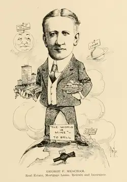 George F. Meacham by Edwin F. Brotze, from the 1906 book Cartoons and Caricatures of Seattle Citizens, illustrated by Seattle cartoonists, including four who later billed themselves as part of the Seattle Cartoonists' Club.