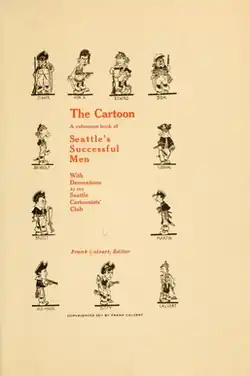 ![]() The Seattle Cartoonists' Club shows itself in caricature, in its 1911 book The Cartoon; A Reference Book of Seattle's Successful Men. | |