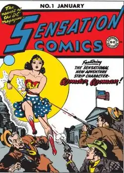Sensation Comics is the title of an American comic book anthology series published by DC Comics that ran for 109 issues from 1942 to 1952. For most of its run, the lead feature was Wonder Woman, a character which had been introduced in All Star Comics #8 (October 1941).[1] Other characters that appeared included the Black Pirate, the Gay Ghost, Mister Terrific, Wildcat, Sargon the Sorcerer, Hal Mason, the Whip, the Atom, Little Boy Blue, Hop Harrigan, Romance, Inc., Lady Danger, Doctor Pat, and Astra.