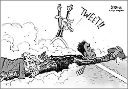 Wells illustrated a weekly political cartoon for the Durango Telegraph,[1] an independent weekly newspaper in Durango, Colorado, from 2002 to 2021.[2] Wells retired from political illustration after 19 years citing the need for white men to "shut up and listen," and the lack of input from "underrepresented voices" in U.S. political discourse.[3] Wells also blogged as a cartoonist for the Huffington Post from 2009 to 2016.[4]