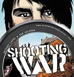 Shooting War is a future history webcomic and graphic novel by writer Anthony Lappé and artist Dan Goldman. Originally published in 2006, the story is set in 2011 and features John McCain as the President of the United States. It tells the story of a video-blogger named Jimmy Burns. Burns films a terrorist suicide bombing attack on a Starbucks in Brooklyn and becomes an overnight media star. Shortly afterward, he is sent to cover the still-raging war in Iraq for the fictional Global News Network.[1]