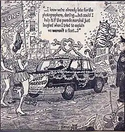 ![]() Cover of The Barron Book, a 1972 anthology of editorial cartoons, includes typical biplane and "puddy tat" | |