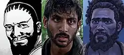 ![]() From left to right: Siddiq, as he appears in the comic book series, television series (portrayed by Avi Nash) and video game series. | |