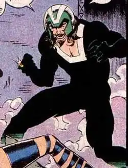 Still in the employ of Vixen, Slaymaster was to bring Captain Britain to her. Slaymaster manages to capture the Captain and in the course of the story steals his costume which is thought to be the source of Captain Britain's powers. Captain Britain is still able to control the suit and telekinetically rams Slaymaster into a wall, knocking him out.[2]