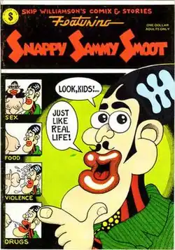 ![]() The cover of Snappy Sammy Smoot #1 (Kitchen Sink Press, Jan. 1979), illustrated by Skip Williamson. | |