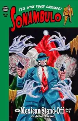Sonámbulo (Sleepwalker) is a fictional character from the American independent comic book series of the same name created by Rafael Navarro.[1][2] The character made his debut in Sonambulo: Sleep of the Just, the first of the ongoing series in 1996. The story follows the eponymous character, who in the 1950s became a successful luchador. Due to his rise in fame, Sonámbulo was approached by the local Mafia with the intent of extorting money from him and other special services. Around the same time, the masked-wrestler was plagued by a strange sleeping disorder. Upon refusing the gangsters demands, he was brutally beaten, shot, and left for dead. Instead of dying however, Sonambulo fell into a deep hibernation only to awake decades later, having the power to see other people's dreams and having the uncanny ability to go without sleep. Using his new-found powers, Sonámbulo becomes a private detective against the supernatural underworld of the night. All of the collected stories following the character feature some surreal dream-like quality, keeping with the theme of sleep.