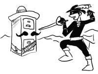Frank's cartoons have occasionally featured repeating characters such Cabinet Sanchez, Eggplant Mike and Troy Powell.[9] From the email spam line, "you were wrong cabinet sanchez", Frank drew a file cabinet wearing a bandolier, a Mexican sombrero, and sporting a large black mustache. He published it on July 23, 2004. The cartoon proved popular and was made into merchandise such as T-shirts.[10] Later in 2004, Worm Quartet began performing an original song called "You Were Wrong Cabinet Sanchez" and in 2008 the artist released it as part of the album Mental Notes. The song has been featured on the Dr. Demento radio show during the final "Funny Five" countdown,[11] and was released on Laughter is a Powerful Weapon Volume 2, a compilation of songs from the radio show.[12]