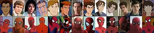 - A main and Noir versions of Peter Parker / Spider-Man appear in Spider-Man: Into the Spider-Verse (2018), produced by Sony Pictures Animation and directed by Bob Persichetti; respectively voiced by Jake Johnson and Nicolas Cage.[30] Chris Pine also voices a version of Peter Parker in the film that is similar to his Earth-1610 counterpart.[31] Johnson voices the main version in the sequel Spider-Man: Across the Spider-Verse (2023). Several alternate universe variations of the character appear, including the Spider-Man (1967) version (voiced by Jorma Taccone), Lego Spider-Man (voiced by Nic Noviki), The Spectacular Spider-Man version (voiced again by Josh Keaton), the Insomniac series' version (voiced again by Yuri Lowenthal), and the Earth-65 version (voiced by Jack Quaid), who became his universe's Lizard.[4]
