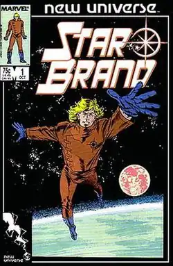 The Star Brand was created by Marvel Comics editor-in-chief Jim Shooter to be the flagship series of the New Universe line.[4][5] Mark Gruenwald's notes from the meeting in which the New Universe concept was fleshed out indicate that the original title was "Will Power", and that the name "Star Brand" was taken from an unused concept by Archie Goodwin.[6]
