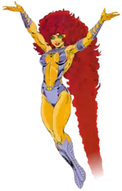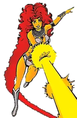 Starfire is a superheroine created by Marv Wolfman and George Pérez appearing in American comic books created by DC Comics. She debuted in a preview story inserted within DC Comics Presents #26 (October, 1980). Since the character's introduction, Starfire has been a major recurring character in Teen Titans and various other iterations of the team, sometimes depicted as the team's leader, and a significant love interest for Dick Grayson.