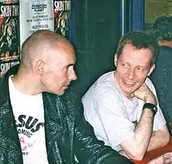 ![]() Steven Cook (right) with Grant Morrison at a signing for their Skin Two magazine collaboration The Story of Zero. | |