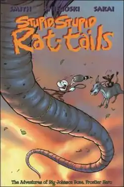 Whereas the other spin-off, Rose, focuses on the valley people from the story, Stupid, Stupid Rat-Tails focuses on the formation of Boneville, the hometown of the Bones. The series is drawn but not written by Smith. The writer is Tom Sniegoski. The backup feature included in the trade paperback collection, Riblet, is written by Sniegoski and drawn by Usagi Yojimbo creator Stan Sakai. The series was yet again reprinted in the Scholastic collection Tall Tales, released in August 2010.[1][2][3] The Riblet backup story was reprinted in Scholastic's More Tall Tales collection, published in September 2023.