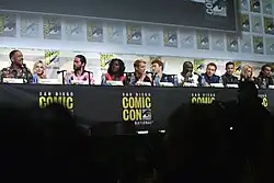 Suicide Squad held a panel at the 2015 San Diego Comic-Con, with stars Smith, Robbie, Courtney, Davis, and Kinnaman among those who appeared. A trailer intended to be exclusive to the event premiered but was leaked online, with Warner Bros. responding by stating they would not release an official version.[94] However, the following day, Warner Bros. released an official version, stating: "Warner Bros. Pictures and our anti-piracy team have worked tirelessly over the last 48 hours to contain the Suicide Squad footage that was pirated from Hall H on Saturday. We have been unable to achieve that goal. Today we will release the same footage that has been illegally circulating on the web, in the form it was created and high quality with which it was intended to be enjoyed. We regret this decision as it was our intention to keep the footage as a unique experience for the Comic-Con crowd, but we cannot continue to allow the film to be represented by the poor quality of the pirated footage stolen from our presentation."[95]