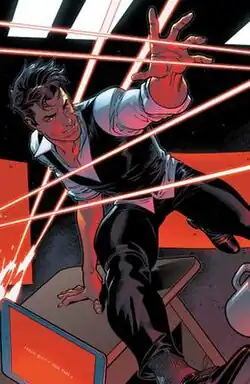 When the time travelling antihero Cable takes over the New Mutants and turns them into the paramilitary group X-Force, Sunspot parts ways with the team.[17] During this time, Sunspot is tutored by Gideon of the Externals, an old business partner of Roberto's father (who has since died), who suspects Sunspot to be a fellow External.[18] Gideon experiments on Sunspot, granting him new powers such as flight and the ability to fire blasts of solar energy.[19] For a time, Sunspot becomes lost in the spacetime continuum after interfering with the teleportation powers of Locus.[20] During this time, a villain called Reignfire appears, with a remarkably similar appearance to Sunspot.[21]