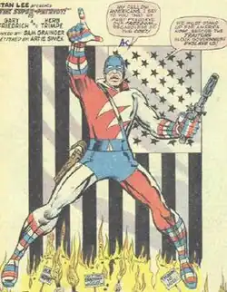 - ↑ Friedrich, Gary (w), Trimpe, Herb (p), Grainger, Sam (i). "New! New! New! The Super-Patriot!" Nick Fury, Agent of S.H.I.E.L.D., no. 13 (July, 1969). Marvel Comics.