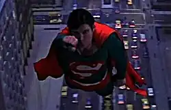 New York City doubled for Metropolis, while the New York Daily News Building served as the location for the offices of the Daily Planet. Brooklyn Heights was also used.[47] Filming in New York lasted five weeks, during the time of the New York City blackout of 1977. Production moved to Alberta for scenes set in Smallville, with the cemetery scene filmed in the canyon of Beynon, Alberta, the high school football scenes at Barons, Alberta, and the Kent farm constructed at Blackie, Alberta.[48][49] Brief filming also took place in Gallup, New Mexico; Lake Mead; and Grand Central Terminal.[10] Director Donner had tensions with the Salkinds and Spengler concerning the escalating production budget and the shooting schedule. Creative consultant Tom Mankiewicz reflected, "Donner never got a budget or a schedule. He was constantly told he was way over schedule and budget. At one point he said, 'Why don't you just schedule the film for the next two days, and then I'll be nine months over?'"[45] Richard Lester, who worked with the Salkinds on The Three Musketeers and The Four Musketeers, was then brought in as a temporary co-producer to mediate the relationship between Donner and the Salkinds,[22] who by now were refusing to talk to each other.[45] On his relationship with Spengler, Donner remarked, "At one time if I'd seen him, I would have killed him."[24]