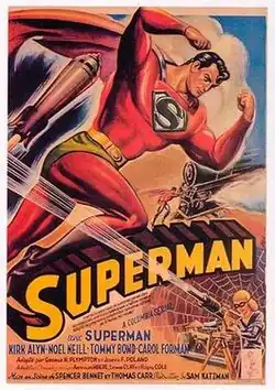 Superman is a 1948 15-part Columbia Pictures film serial based on the comic book character Superman. It stars an uncredited Kirk Alyn (billed on-screen only by his character's name, Superman; but credited as Kirk Alyn on the promotional posters) and Noel Neill as Lois Lane. It was the first live-action appearance of Superman on film.[1] The serial was directed by Thomas Carr (who later directed many early episodes of the Adventures of Superman television series[1]) and Spencer Gordon Bennet, produced by Sam Katzman, and shot in and around Los Angeles, California. It was originally screened at movie matinées, and after the first three scene-setting chapters, every episode ends in a cliffhanger. The Superman-in-flight scenes are animations, in part due to the small production budget.