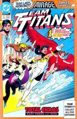 Team Titans is a comic book published by DC Comics that spun out of DC's New Titans series. It began in September 1992 and ended in September 1994. The Team Titans were first introduced as a shadowy group stalking the Titans. Their backstory was revealed in New Titans Annual #7 by writer Marv Wolfman, and were popular enough to merit their own series, which Wolfman also wrote. Phil Jimenez and Jeff Jensen took over writing duties with issue #13, and co-wrote the book until its cancellation.
