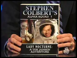 Jansen was introduced on The Colbert Report on the October 26, 2005 episode as the protagonist of Stephen Colbert's fictitious self-published 1,800-page novel, Stephen Colbert's Alpha Squad 7: Lady Nocturne: A Tek Jansen Adventure.[2] The novel became a recurring joke, with Colbert occasionally discussing the manuscript and reading passages while lamenting that no publisher has distributed the book yet. Although a copy of the novel was seen on the show and at the Stephen Colbert Museum and Gift Shop in Tuscumbia, Colbert County, Alabama, the former copy is actually "The Rolling Stone Encyclopedia Of Rock & Roll" with a new cover glued over the original, and the latter copy was merely blank pages. A number of chapters were made available on the show's official website, ColbertNation.com. In the show's April 3, 2008 episode, Colbert claimed that a total of twenty publishers had turned down the novel.