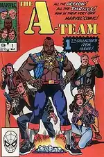 In 1984, Marvel Comics released an A-Team title, which ran for 3 issues.[1] The three issues were published within the same month so that they could be bundled together and sold in chain stores.[2] Jim Salicrup, who edited all three issues and wrote two of them, said that due to the tight deadline and the unavailability of A-Team episodes on home media, he watched a single episode of the series on TV and delivered both his plots to production studio Universal for their approval the next day.[2] The Marvel Comics series was sold individually and released in "packs": one pack contained the first 2 issues, the other all 3 issues. Each pack was in a sealed transparent bag featuring Marvel's logo and a picture of Spider-Man. Marvel released the series in a trade paperback called The A-Team Storybook. (ISBN 0517553856).
