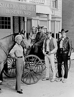 The Big Valley is an American Western television series that originally aired from September 15, 1965, to May 19, 1969 on ABC.[1] The series is set on the fictional Barkley Ranch in Stockton, California, from 1884 to 1888. The one-hour episodes follow the lives of the Barkley family, one of the wealthiest and largest ranch-owning families in Stockton, led by matriarch Victoria Barkley (Barbara Stanwyck), her sons Jarrod (Richard Long) and Nick (Peter Breck), daughter Audra (Linda Evans), and their half-brother Heath (Lee Majors).[2] The series was created by A.I. Bezzerides and Louis F. Edelman, and produced by Levy-Gardner-Laven for Four Star Television.