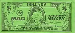 The $1,329,063 bill included in the game for the Alfred E. Neuman space - Everyone else moves 1 space back and does what it says.