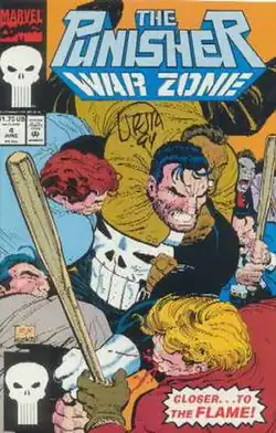 The Punisher War Zone is a comic book series published by Marvel Comics about the vigilante The Punisher. The series was written and drawn by several artists during its run. The series lasted for 41 issues. It was the first series of The Punisher War Zone title history and lasted from 1992 to 1995. The vast majority of the series was written by Chuck Dixon.[1] Besides John Romita Jr. who worked a lot on the series, several other artists painted the covers, among them Rainier "Rain" Beredo, John Buscema and Joe Kubert.[2][3][4][5]