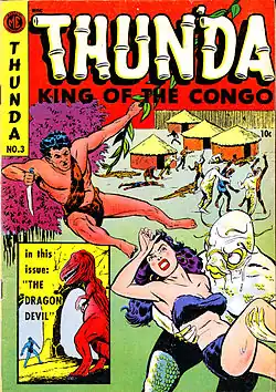 Thun'da is a fictional character created by artist and conceptualist Frank Frazetta[1] for comic-book publisher Magazine Enterprises. The character debuted in Thun'da #1 (1952), with writer Gardner Fox scripting. After only a few issues the title was discontinued in 1953.[2]