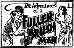 A few attempts at serialization were also made, most notably in the "Fuller Brush Man" stories. During the Senate racket investigations of the 1950s, a New York businessman named Abe Rubin was asked if there was any truth to the rumor picked up by a Chicago police lieutenant that he had once been the original printer and distributor of the series. The Fuller Brush Man stories made a very weak stab at continuity (e.g., "The following week I was sent to Tallahassee"), but each eight-panel story was self-contained. The only real serial stories told in the eight-pager format were three tales by Blackjack, featuring original characters named Fifi, Maizie, and Tessie, in "To be continued" narratives which stretched through three or four installments before concluding.[5]