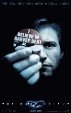 - The Harvey Dent incarnation of Two-Face appears in The Dark Knight, portrayed by Aaron Eckhart. This version is depicted as a tragic hero who lacks the gimmickry and dissociative identity disorder commonly associated with the character and is nicknamed "Gotham's White Knight" due to his public image as a crusader for justice. Additionally, he utilizes a two-headed peace dollar to make important decisions and is in a relationship with Rachel Dawes. He is elected to the office of District Attorney, having previously served in the Gotham City Police Department (GCPD)'s internal affairs division, and forms a tenuous alliance with Batman and GCPD Lieutenant Jim Gordon to eliminate Gotham's organized crime. However, corrupt police officers working for mob boss Sal Maroni and the Joker kidnap Dent and Dawes and hold them prisoner in two abandoned buildings set to explode. Despite the GCPD's efforts, Dawes is subsequently killed. While Batman narrowly rescues Dent, the latter is left disfigured and one side of his coin is damaged. The Joker visits Dent in the hospital and persuades him to exact revenge against those he believes are responsible for Dawes' death. After killing Maroni and a GCPD officer who betrayed him, Dent takes Gordon's family hostage. Batman intervenes, persuading Dent to judge him, Gordon, and himself for pressuring the Gotham mob into working with the Joker. Dent shoots Batman and spares himself, but Batman tackles him off a ledge before he can judge Gordon's son. Dent falls to his death and Batman takes the blame for the murders he committed to ensure that he is remembered as a hero.