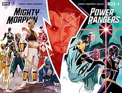 ![]() Combined covers for Mighty Morphin issue #1 and Power Rangers issue #1. | |||