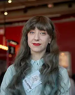 Hanna Gustavsson receiving the Urhunden Prize at the Gothenburg Book Fair 2014. | |