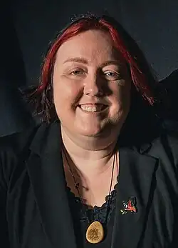 Ursula Vernon grew up in Oregon and Arizona. She studied anthropology at Macalester College in Saint Paul, Minnesota, where she first took art classes.[2] She first became known for her webcomics and as a freelance artist, particularly for her works containing anthropomorphic animals. She then moved into writing and illustrating a number of children's books, her first being published in 2008, and then books for adults under the pseudonym T. Kingfisher.[3][4] She decided to start using the pseudonym in order to avoid confusion amongst parents who were only familiar with her as a children's book author,[5] and chose it because she loves kingfishers (and as an homage to Ursula K. LeGuin, who once joked that the initials "U.K." could stand for "Ulysses Kingfisher").[6] Vernon has published short fiction under both names, and has won a number of awards for them including the Hugo Award and Nebula Award.