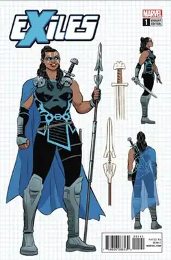 In January 2018, Marvel announced that a version of Valkyrie inspired by Tessa Thompson's portrayal of the character in Thor: Ragnarok would join the Exiles in a series by writer Saladin Ahmed and artist Javier Rodriguez. Ahmed said, "Though she's not technically from the Marvel Cinematic Universe reality, she's basically the literalization of the larger-than-her-physical-frame swagger that Tessa Thompson displayed in Thor: Ragnarok, turned up to 11."[70]
