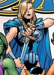 - ↑ Thomas, Roy (w), Pollard, Keith (p), Stone, Chic (i). "From Valhalla--A Valkyrie!" Thor, no. 296 (June 1, 1980).