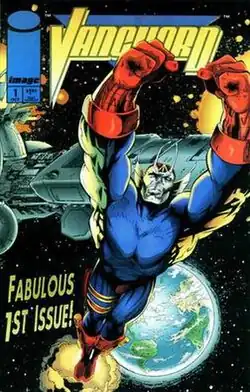 Vanguard is an alien superhero created by Gary Carlson and Erik Larsen for Carlson's self-published comics anthology Megaton. Vanguard is a white alien with small antennae who has been given the unenviable job of guarding Earth, which is viewed by the aliens as boring with little chance of anything happening. His sole companion is a sarcastic, hovering cycloptic robot and their morphing androids, though he quickly developed a relationship with a reporter Roxanne Wells.
